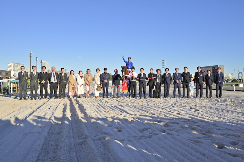 ゴール前の写真を丁寧にデザインアート、愛馬の優勝シーンを綺麗に飾ります